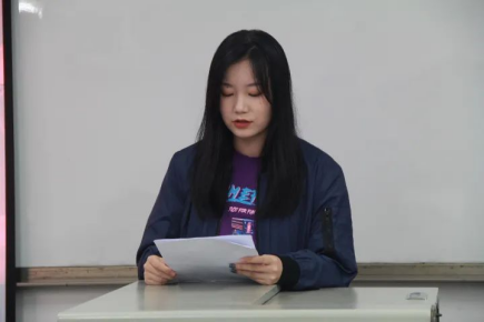 牛心雨同学已经在团委兢兢业业工作了三年,为团委的工作付出了许多的心血。在她的发言中,一字一句无不体现着她对团委的不舍与留恋。但时代的车轮滚滚向前,新一轮的换届已经开启。她满怀激动与喜悦,对所有即将成为团委干部的同学们表达出她真切的期望。